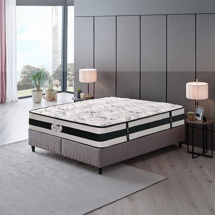 مرتبة سوست متصلة تتميز بارتفاع متوسط يناسب أكثر مقاسات سرير الأطفال ليتوافق مع طوله وحجمه الصغير، كما أنها مناسبة أيضاً للسرير الفردي.